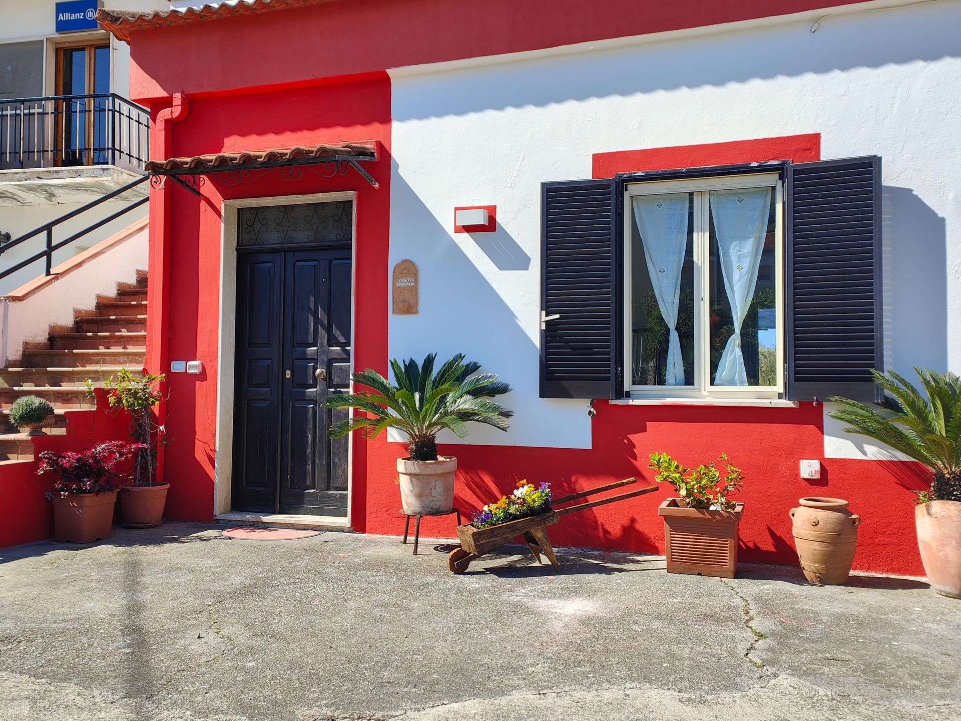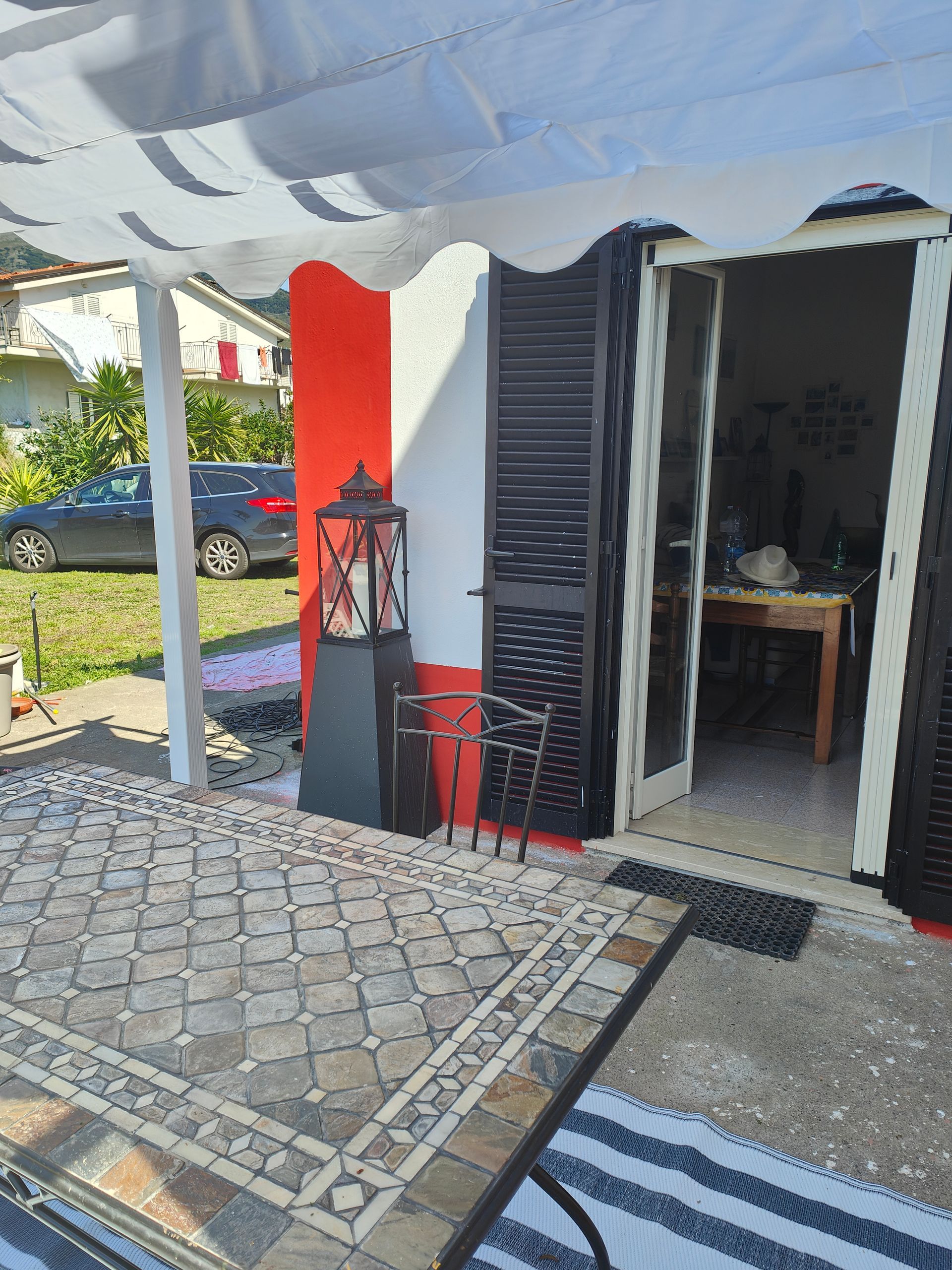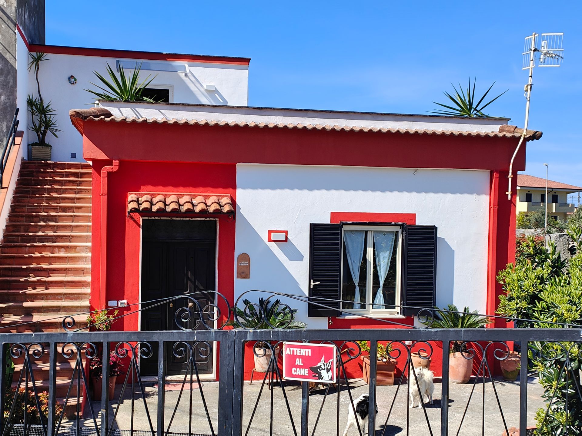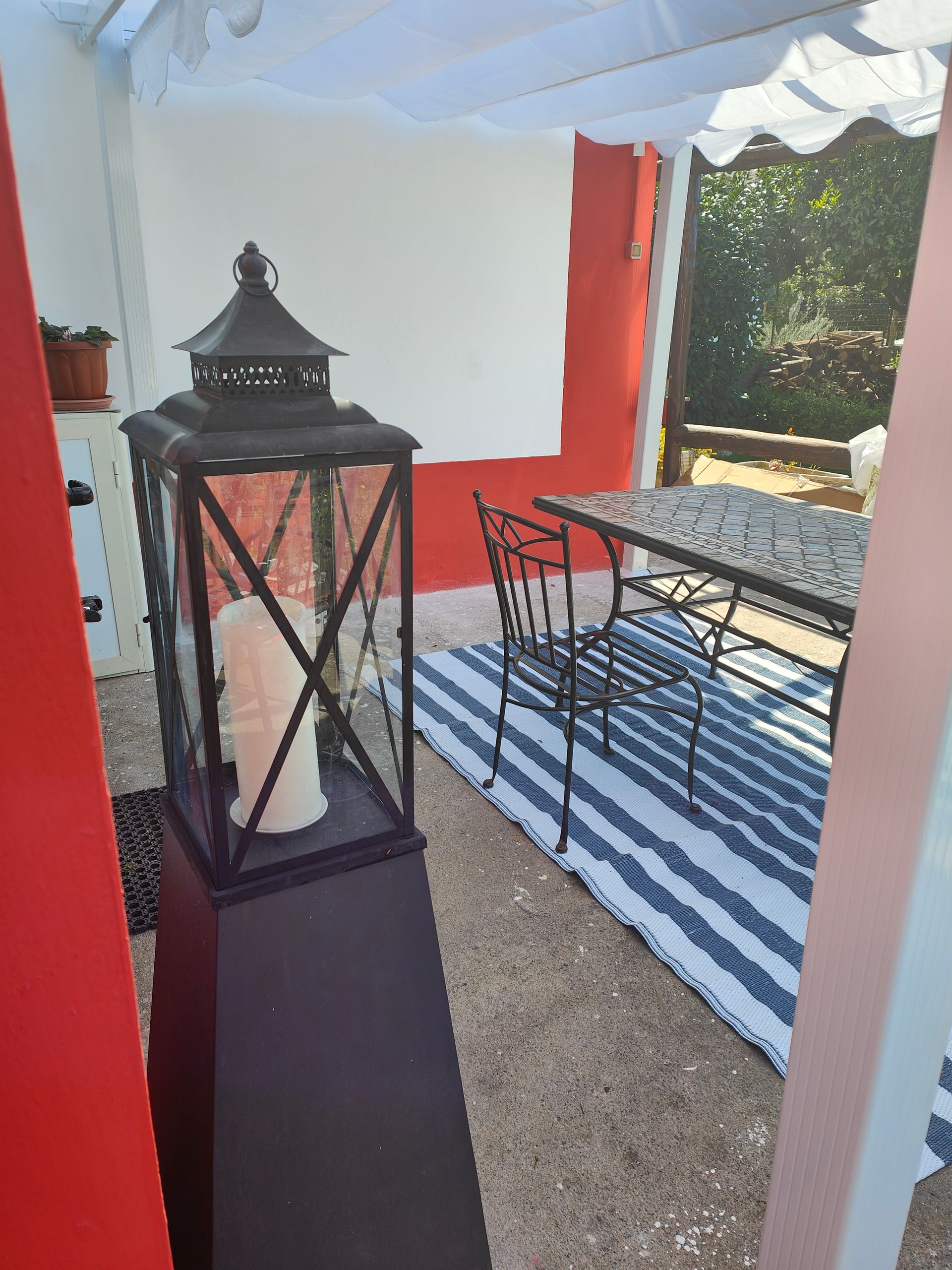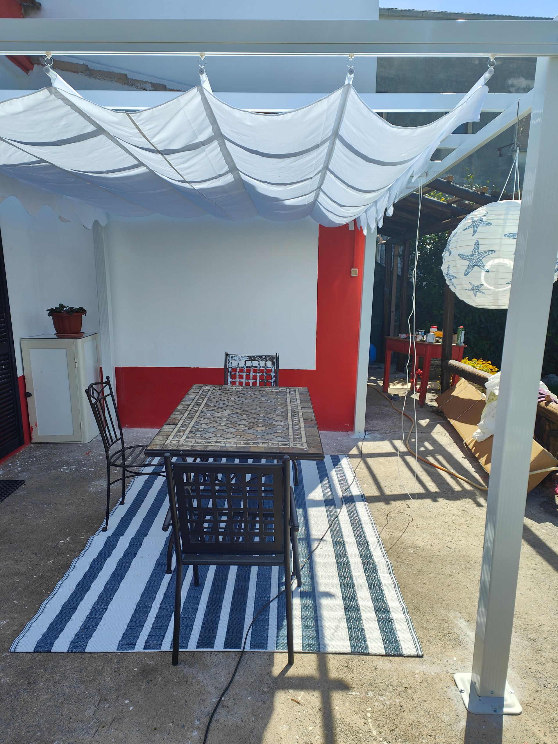 Al primo piano, accessibile da una scala esterna, un'ampia terrazza attrezzata con salottino, ombrellone e tavolo e una seconda camera da letto matrimoniale mansardata.